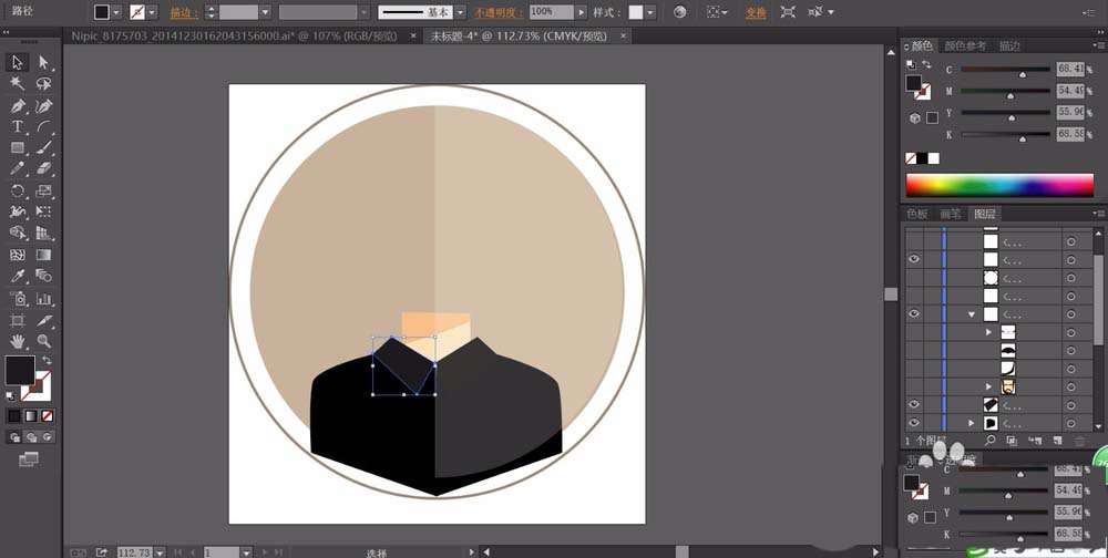 4、复制这个身体的路径,我们胳膊灰黑色来填充,这就是大叔的衬衫。