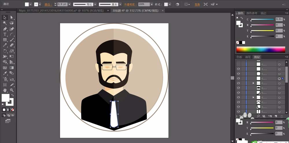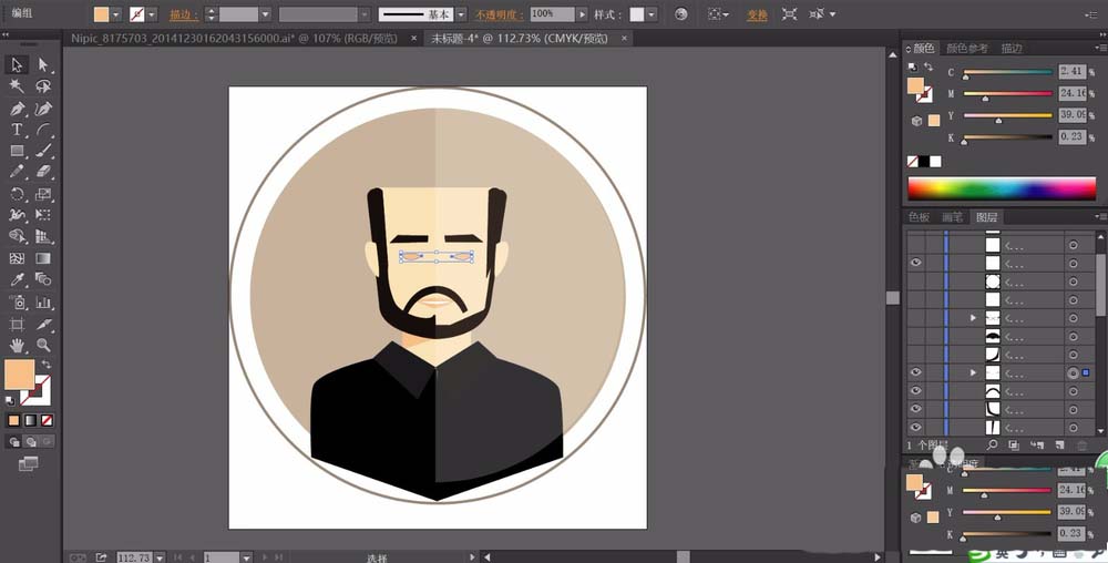 ai中设计icon矢量图标很方便,今天我们就来看看画一个大胡子大叔头像的方法,我们要展现粗狂的外表展现了大叔斯文的一面,我们从中学习一下灰黑色与土黄色之间的搭配技巧,还有人物外表元素的细腻画法,下面我们就来看看详细的教程。