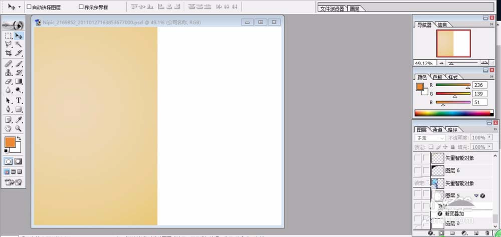 1、先用矩形工具来根据实际的尺寸画出员工卡的正面与反面的边框,我们填充正面为土黄色,反面为白色。