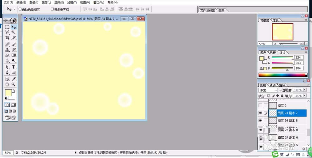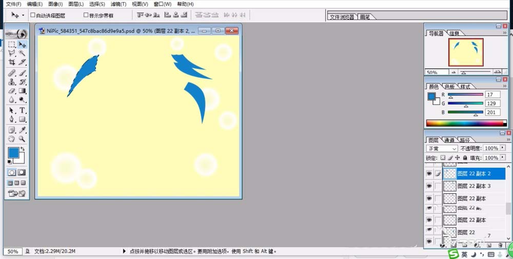 2、用同样的方法在背景上面画出更多的白色的光斑,让光斑分布到背景上面的各个地方。