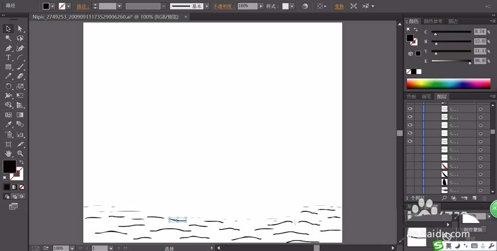 1、先用钢笔勾勒出大海中的众多的波浪的路径,我们可以先复制再变化。