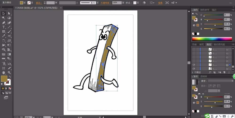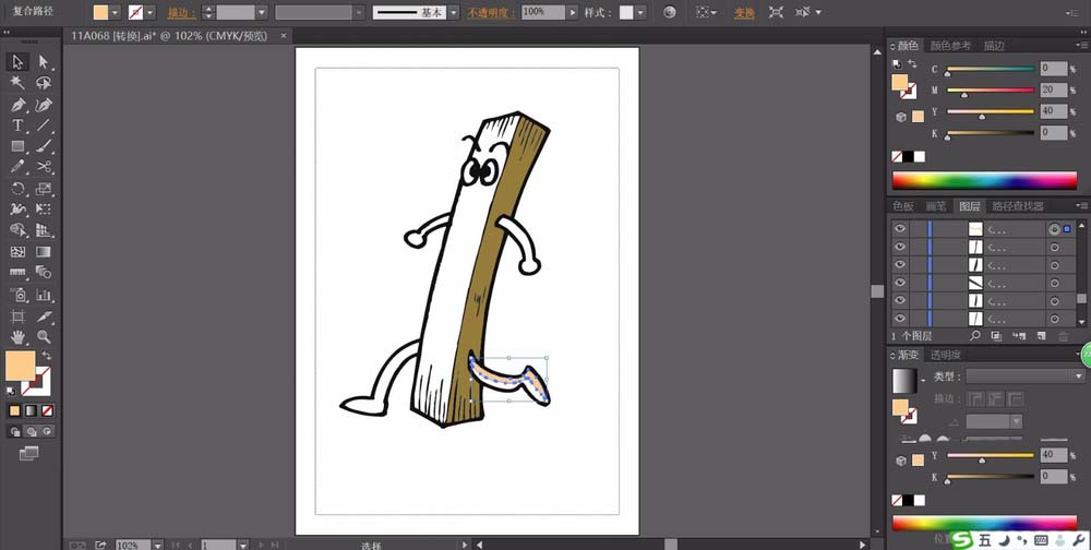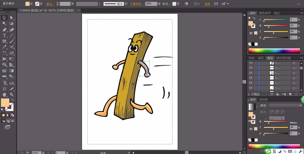 ai中想要画一个木条卡通角色,该怎么给木条添加人类的感觉呢?下面我们就来从中我们学习一下人物的表情,还有卡通风格的人物的动作的画法,请看下文详细介绍。