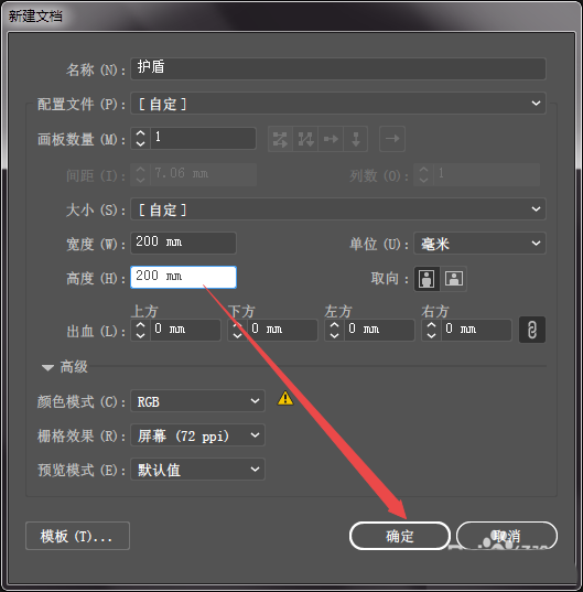 1、打开AI软件,然后新建一个文件,根据需要设计画板大小和数量,确定。