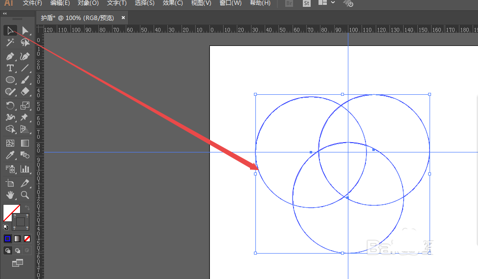 4、然后按下键盘的alt键拖拽第一个圆复制出两个一样大小的圆。