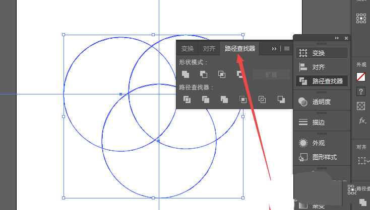 5、然后使用直接选择工具全部选中这些圆,找到路径查找器,然后打开它。