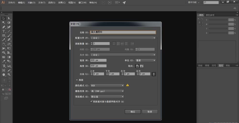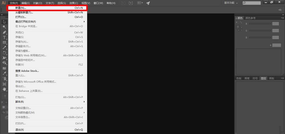 1、打开AI软件,选择菜单栏的文件—新建,创建800*800px画布(快捷键Ctrl+N),如图所示。
