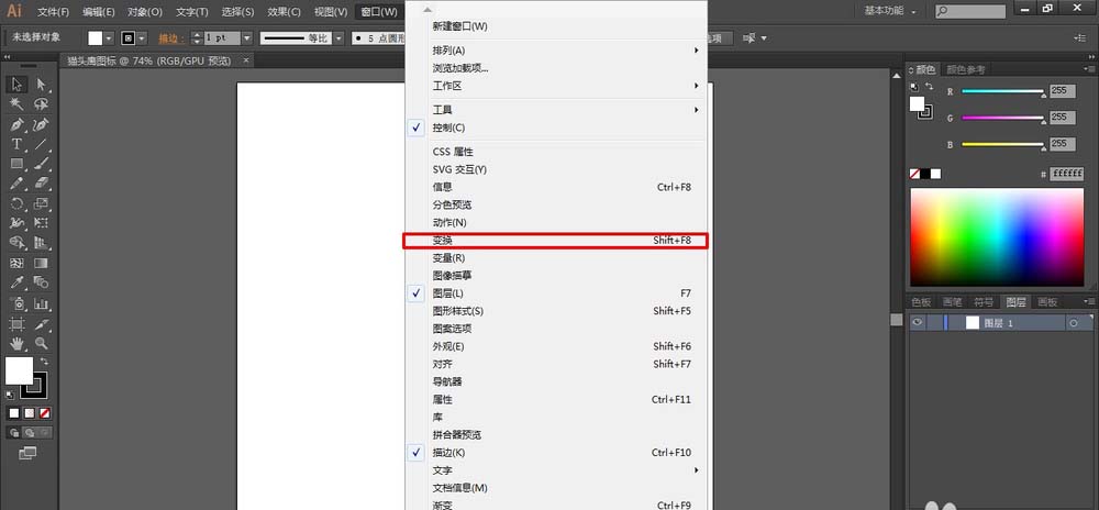 2、选择菜单栏的窗口—变换,打开变换、对齐、路径查找器的组合面板(快捷键Shift+F8),如图所示。