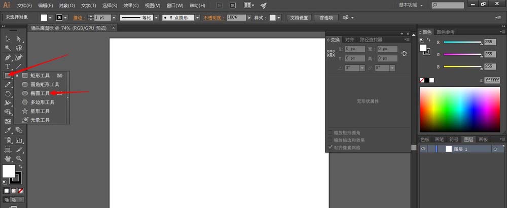 3、鼠标右键左侧工具栏的矩形图标,选择椭圆图标(快捷键L),如图所示。