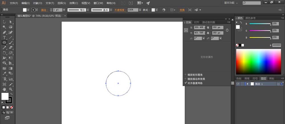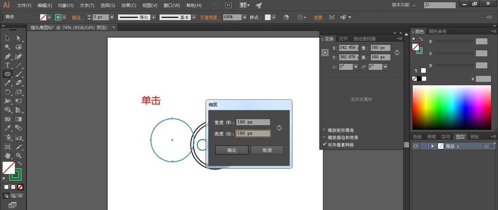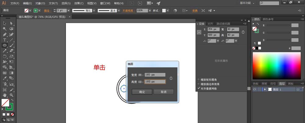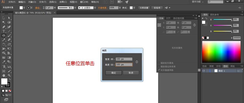4、在画布空白处单击,创建160*160px的圆,如图所示。
