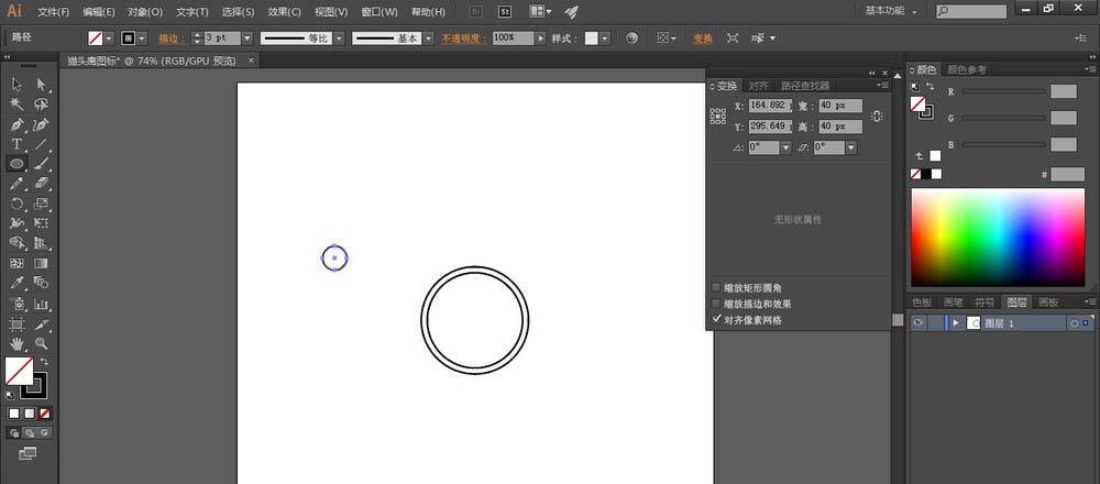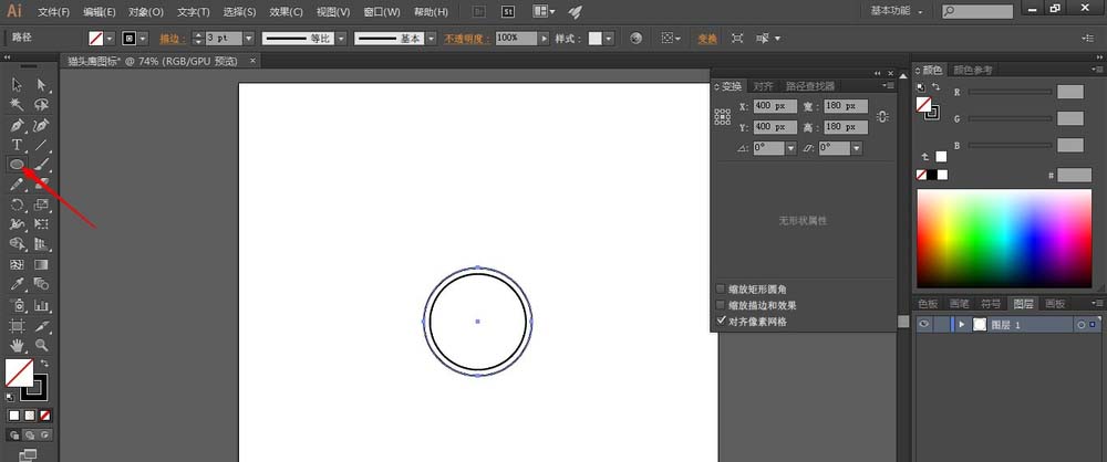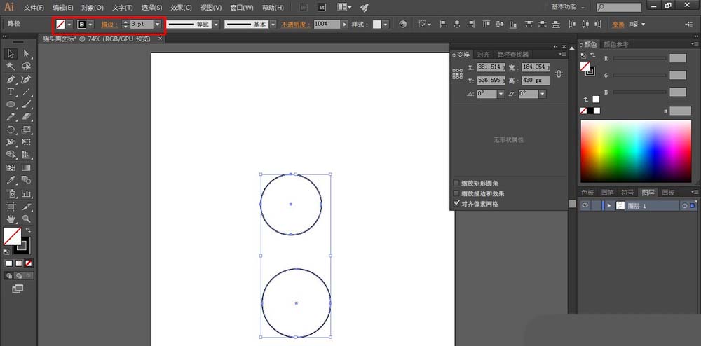 8、修改上部工具栏,填充为无,描边为3pt,如图所示。