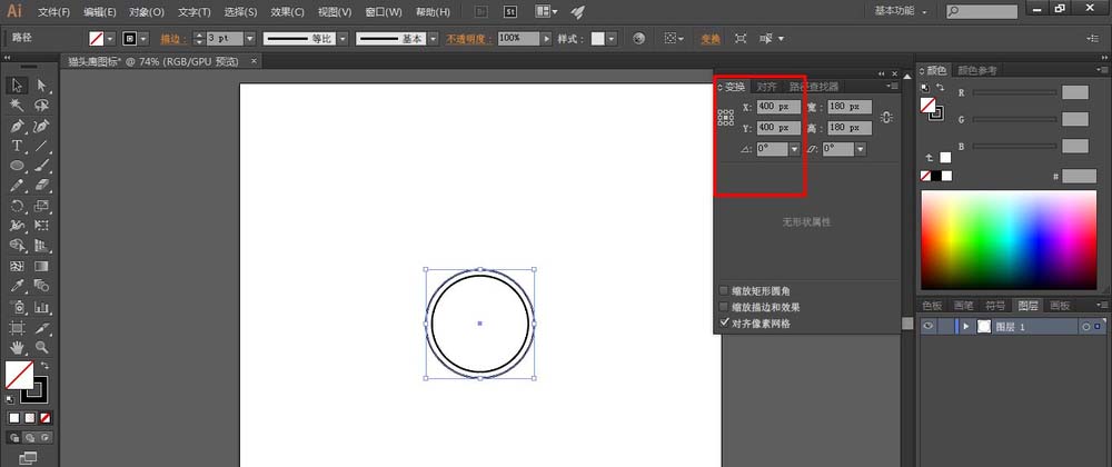 26、修改右上角的变换面板,X:400px,Y:496.35px,数值要精确,不然之后会很麻烦。