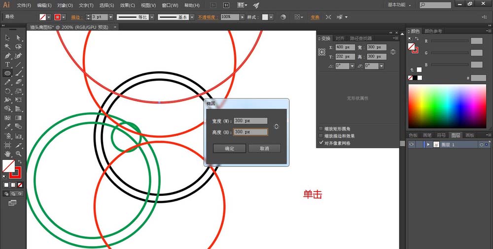 27、在画布空白处单击,创建300*300px的圆,如图所示。
