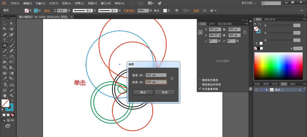 30、在画布空白处单击,创建240*240px的圆,如图所示。