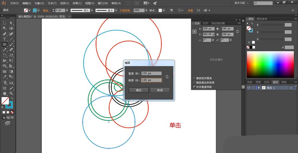 32、在画布空白处单击,创建120*120px的圆,如图所示。
