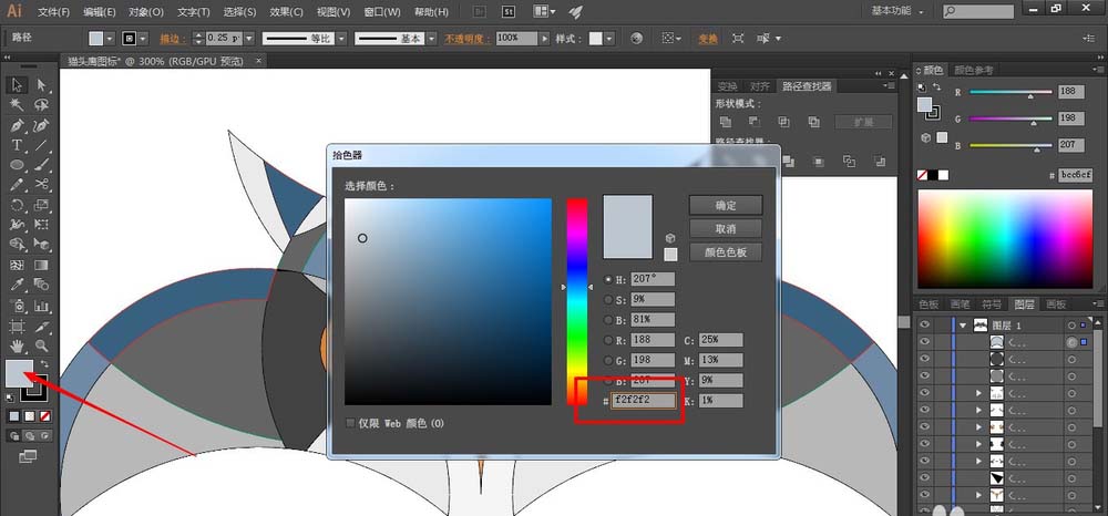 54、双击左侧工具栏的填充图标,填充#f2f2f2,如图所示。