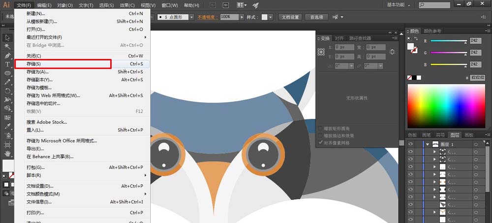 61、最后别忘记保存,选择菜单栏的文件—存储(快捷键Ctrl+S),默认保存,如图所示。