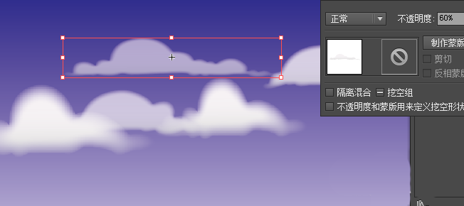 6、然后拖动不同的云彩符号到面板中,设置云彩的不透明度,如图。