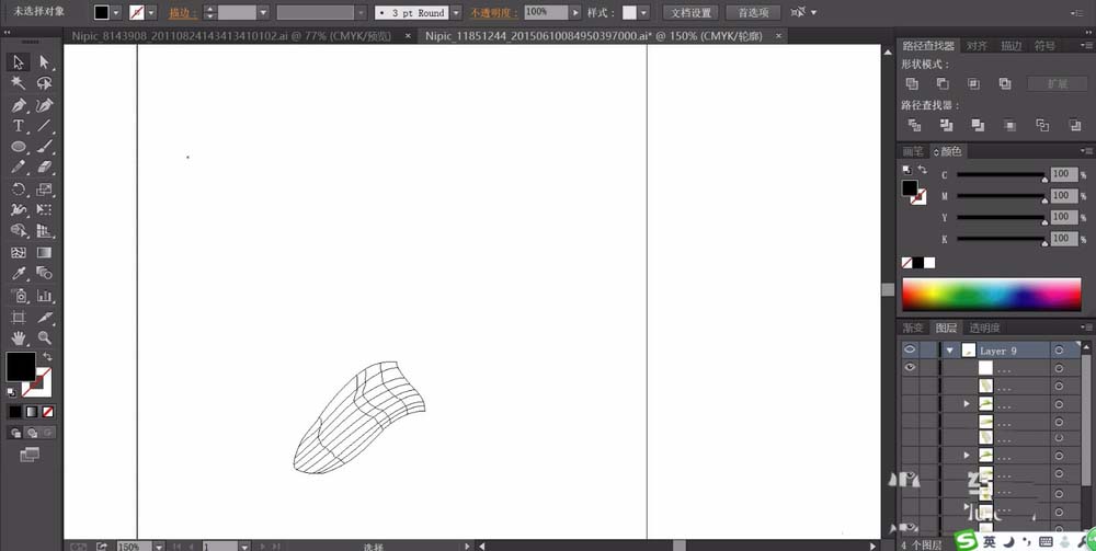 1、先用钢笔工具画出一片花瓣的基本路径,我们再用网格工具把这个路径分解成多个不同的色彩区域。