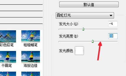 6、然后调整发光大小和发光亮度,发光大小为负值,单击确定,如图。
