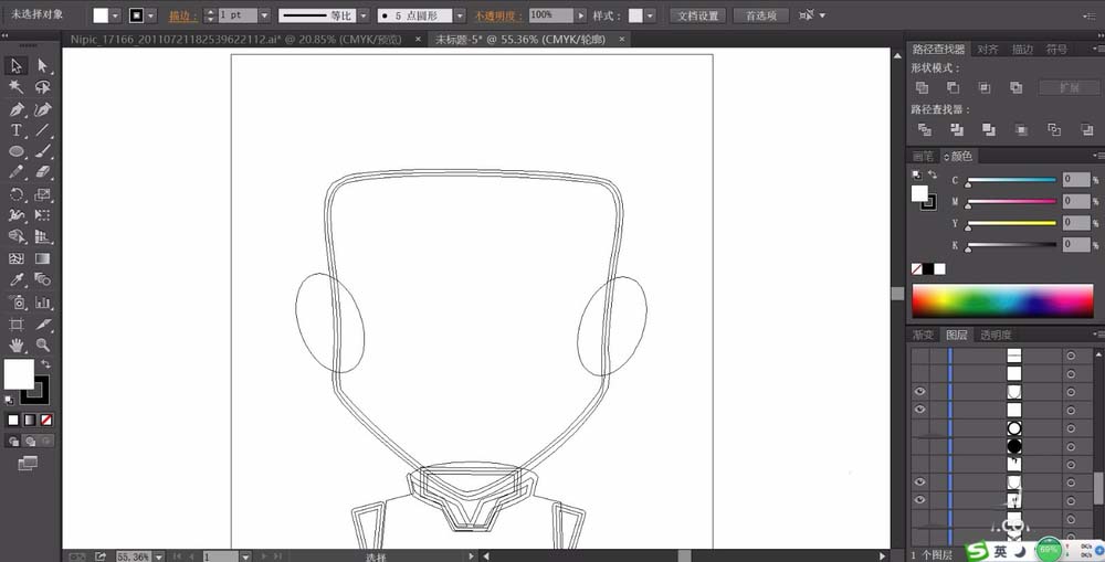 5、这一步画出老夫子的嘴巴与表情,把这些表情路径用黑色描边。
