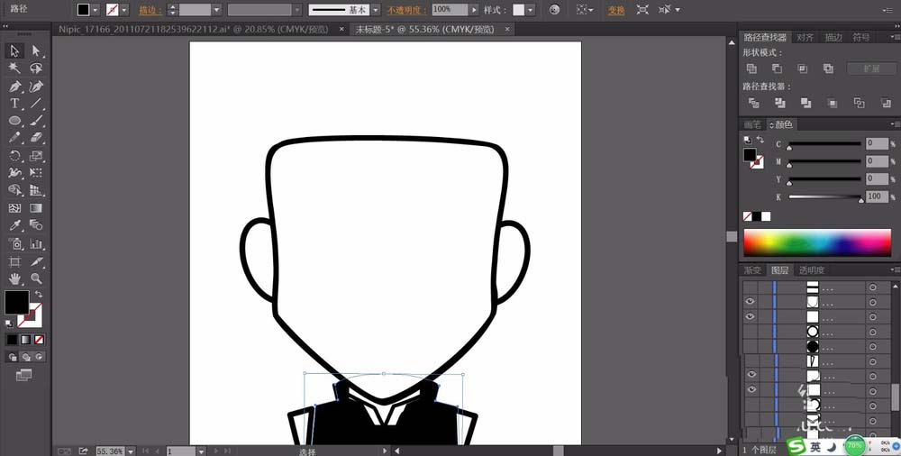 2、我们用黑色对于老夫子的头像进行描边,对于老夫子的衣服用黑色进行填充。