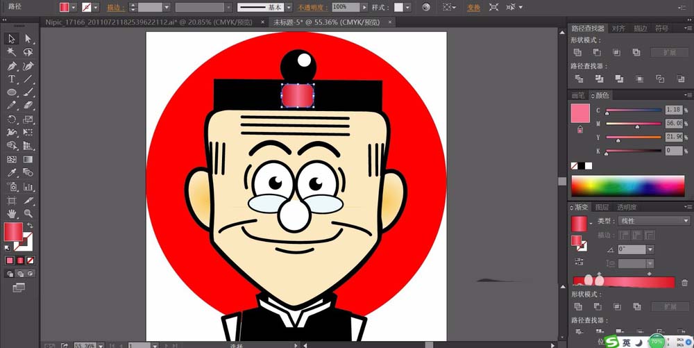 7、使用网格工具给老夫子的帽子上面的宝石做一下红色的渐变效果。老夫子头像设计完成。