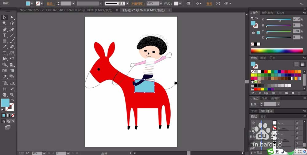今天我们就来看看ai设计场景矢量图的方法,我们来绘制一幅儿童骑驴图,从中学习一下如何快速的绘制人物场景画,把骑驴的运作与表情一一画到位,用好红色与蓝色、粉色的搭配技巧,下面我们就来看看详细的教程。