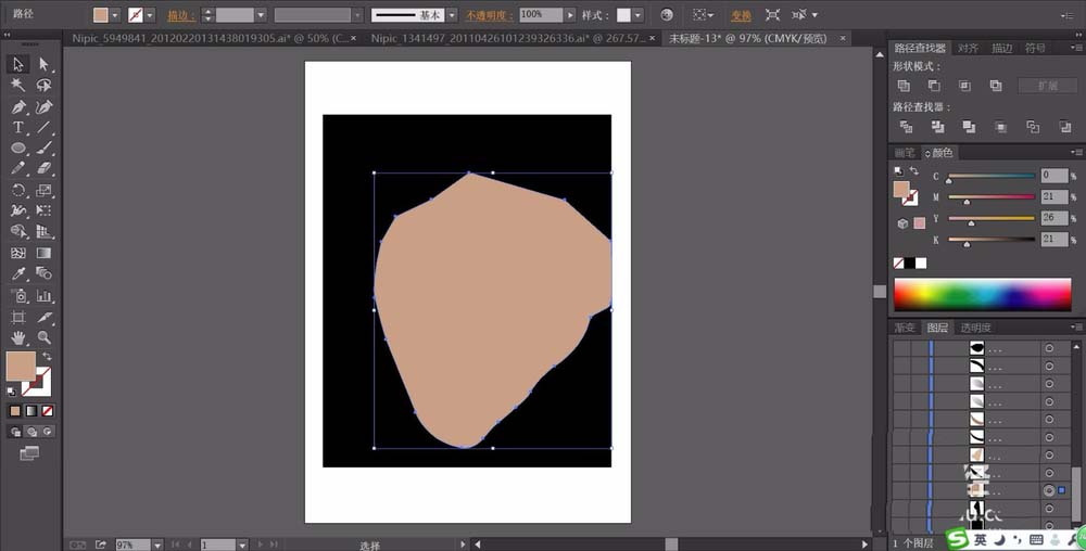 4、接着,我们再来画出人物的耳朵的结构路径,再用咖啡色与黑色搭配填充。