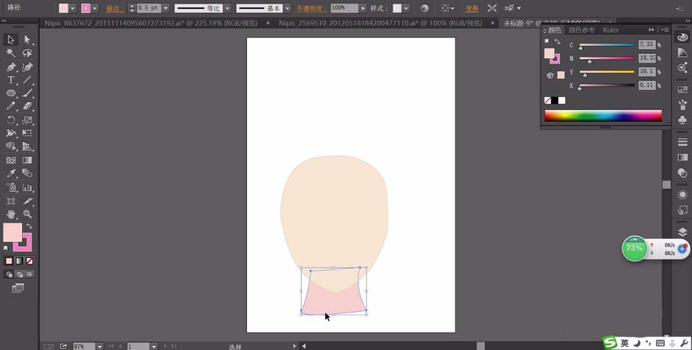 1、先用钢笔画出女孩的脸部与脖子的轮廓,我们用粉色与深粉色填充这两个路径。