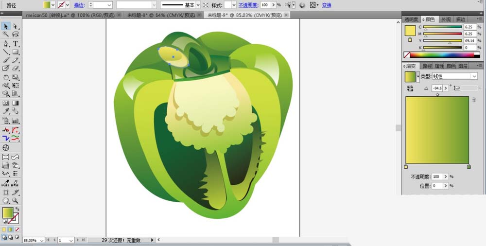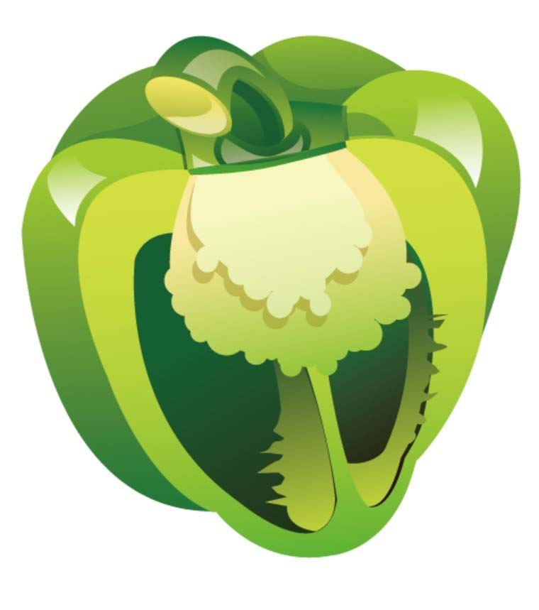 很喜欢吃菜椒,好吃不辣,该怎么画绿色的灯笼椒呢?下面我们就来看看用绿色的渐变来呈现这样的一个菜椒的内外结构,展现丰富的细节效果的技巧,请看下文详细介绍。