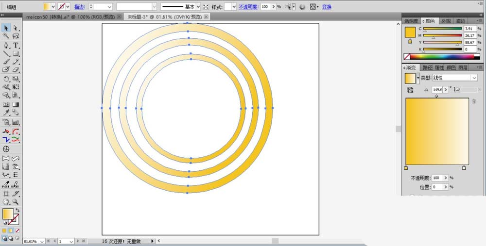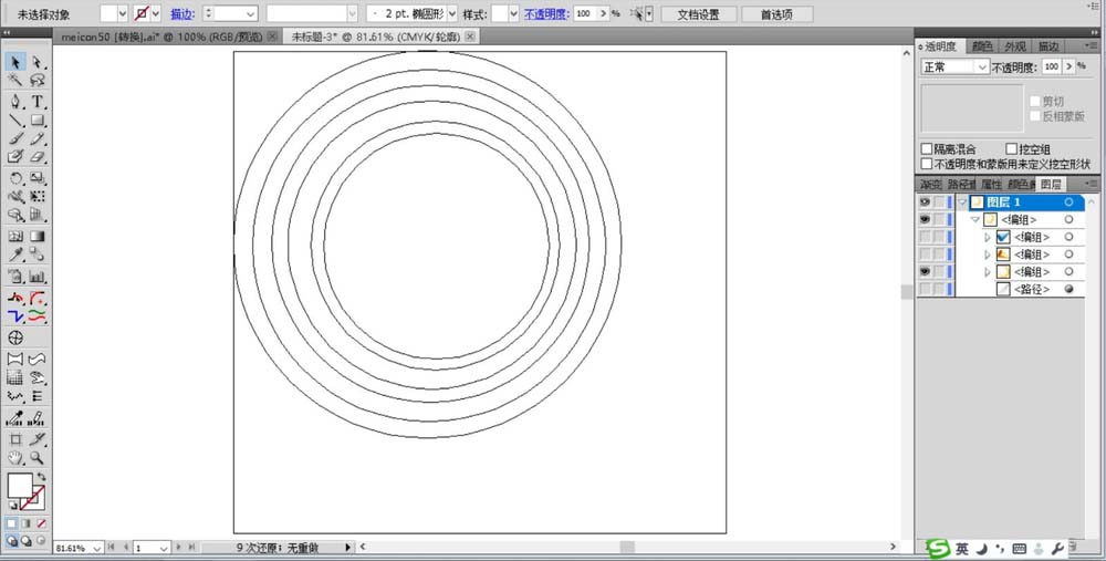 1、我们用大小两个圆形切割出三个同心圆环,让其保持中心对齐的状态。