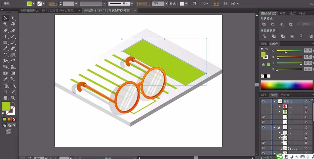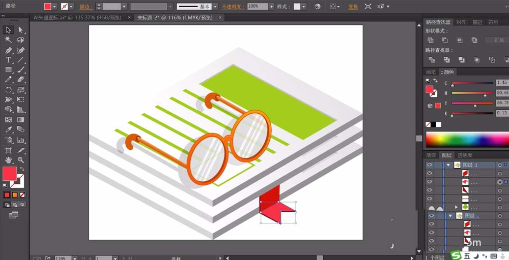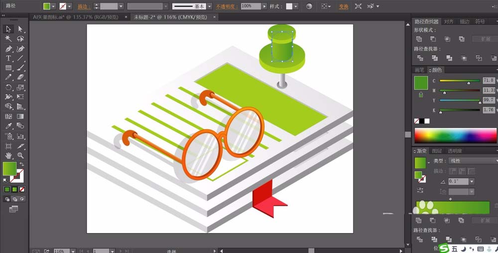 ai中想要用场景化的素材来呈现一幅小小的眼镜,从中学习一下眼镜的画法,还有书本、书签等小工具的画法,下面我们就来看看ai绘制2.5d立体素材场景图的教程。