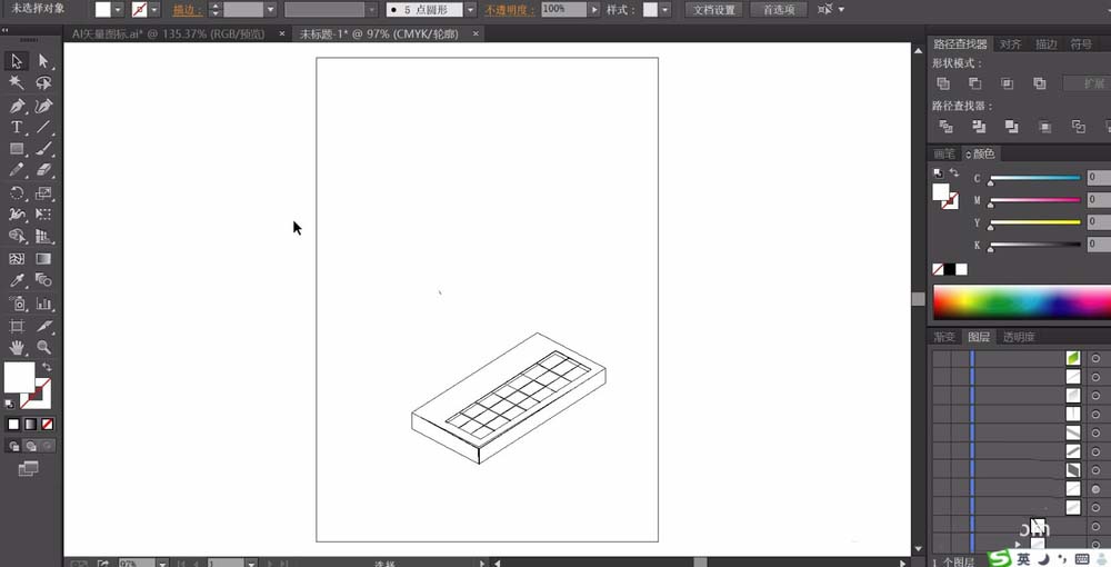 1、先用钢笔画出一个键盘,我们主要画出它的外表轮廓还有内部的很多的小方格,在顶端与右侧的内部,我们要画出一个阴影的路径,从而让键盘有凹槽的效果。