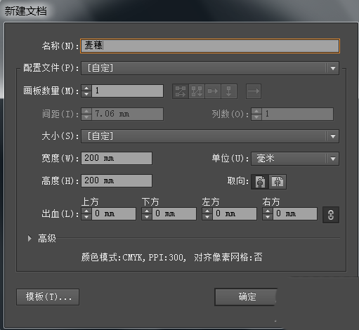 1、打开软件,新建文档,命名我麦穗,确定,如图。