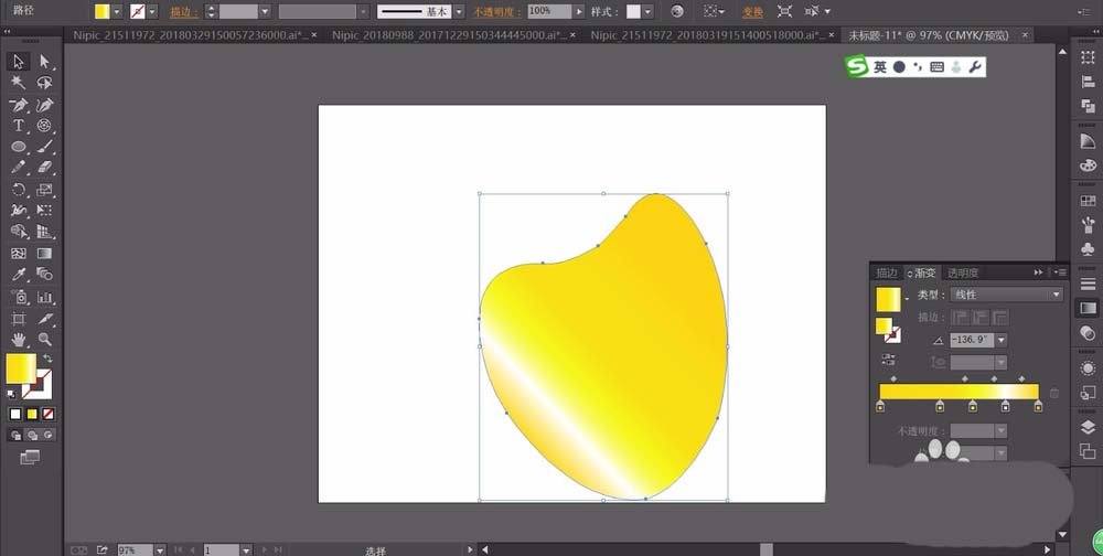 1、先用钢笔画出小锁头的表面的轮廓,我们用金黄色的渐变来填充,让高光区域出现在左侧下方位置,通过调整渐变的角度来实现。