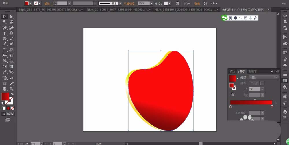 2、复制一下这个黄色的路径,我们向上向右移动几下并填充一个红色的渐变。