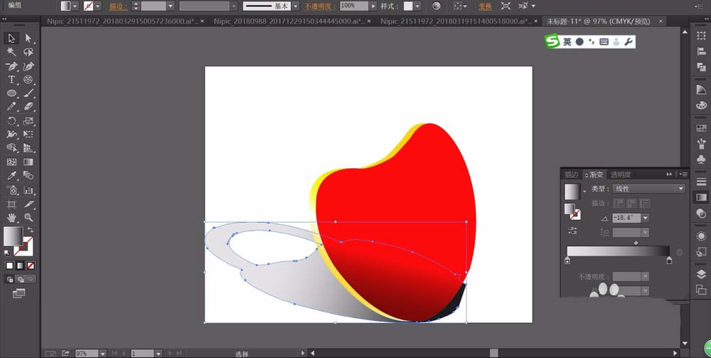 3、继续用钢笔画出一个小锁头的阴影路径,我们用灰黑色的渐变填充。