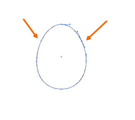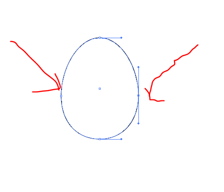 6、直接选择工具点击顶部的锚点,往右移动,变换右侧锚点的手柄,如图。