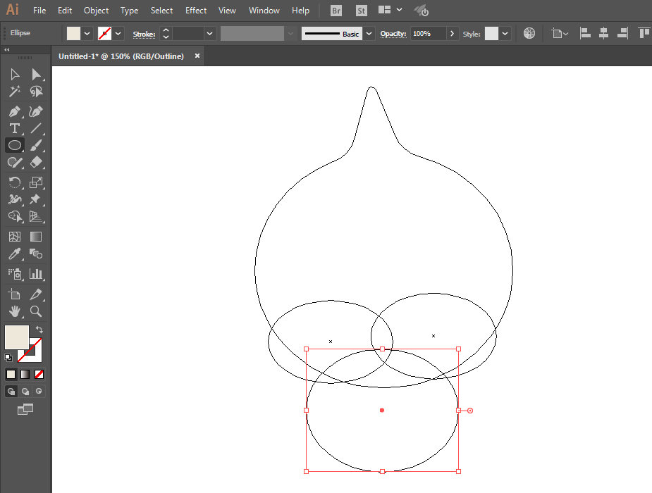 3、椭圆工具绘制胡子部分。形状生成工具减去不要的部分。