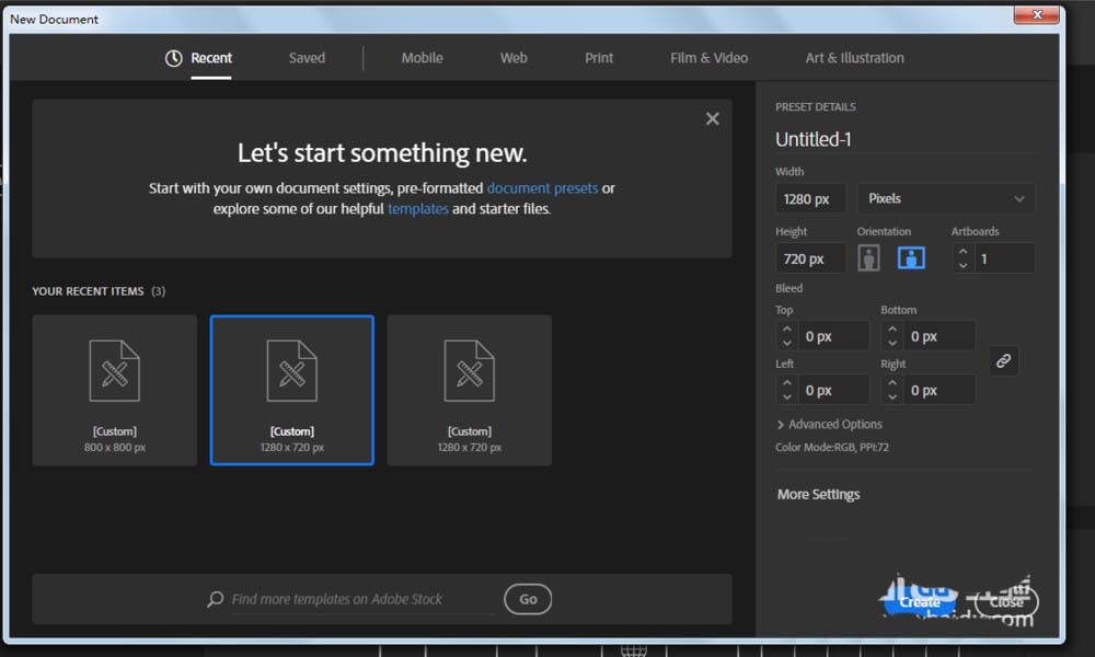 1、要制作插画,最常见的软件就是AI了,我们打开软件,并且新建一个任意大小的文档。