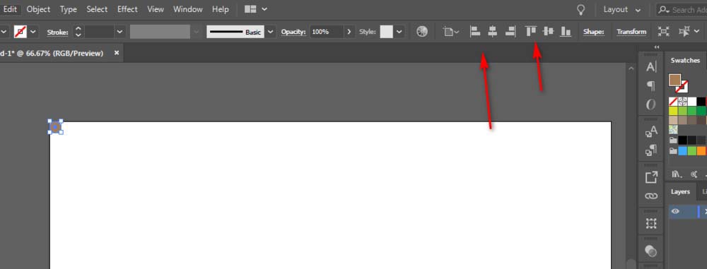 3、选中这个圆形,我们进行左对齐和定对齐两个动作,这样圆形就会去到左上角。