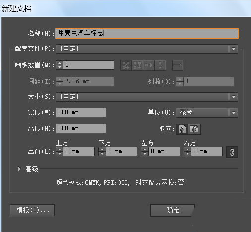 1、打开软件之后,新建面板,命名我甲壳虫汽车标志,确定。