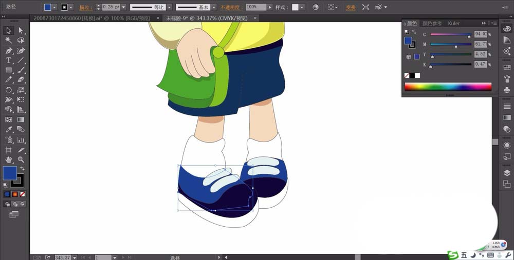 8、用白色与蓝色搭配填充女生的袜子与鞋子,完成可爱女生形象设计。