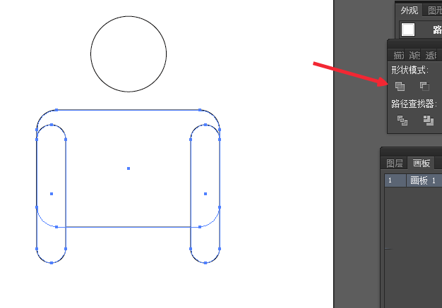 8、把腿部移走,在身体部分绘制一个矩形,选择身体和矩形,执行减去顶层。