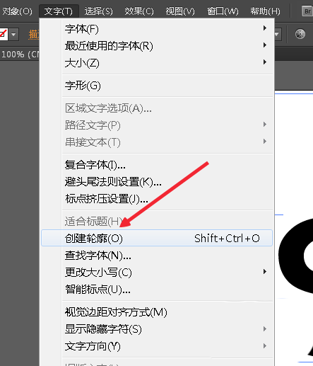 3、调整大小,然后选择文字-创建轮廓,如图。