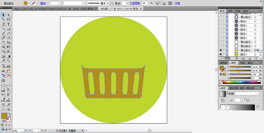 2、用草绿色填充圆形,用落叶绿填充一下篮子的正面路径。