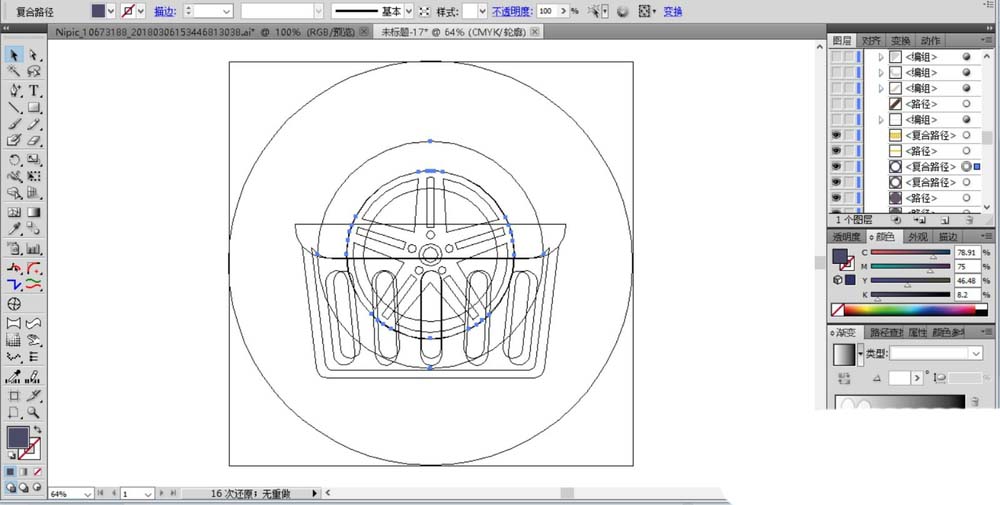 4、我们用灰白色与灰黑色搭配填充轮胎的基本路径。