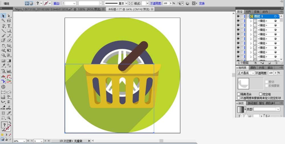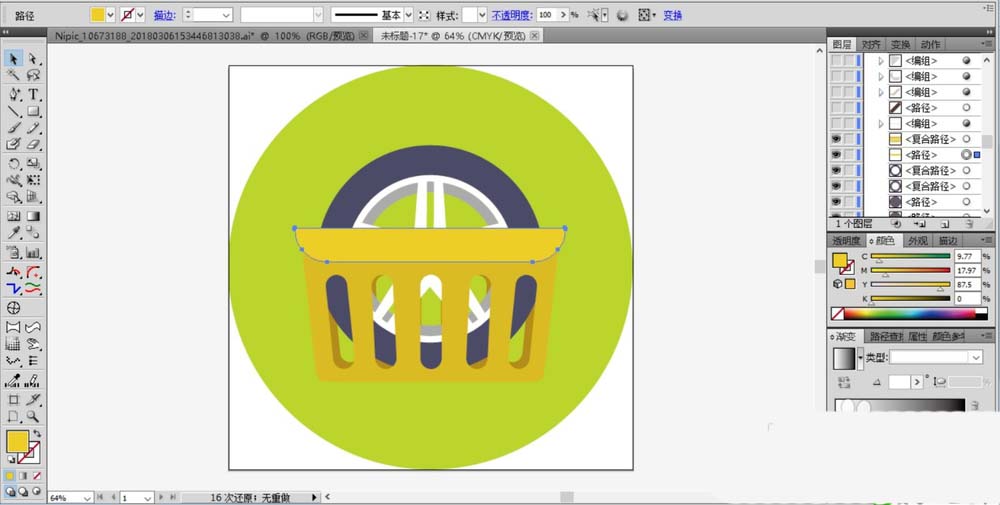 3、继续用钢笔画出购物篮内的轮胎的内部结构,再用矢量工具一一绘制出细节元素。