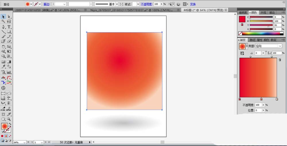 2、我们设置一个红色的径向渐变填充草莓的主体路径,设置一个灰黑色的径向渐变填充草莓的阴影路径。