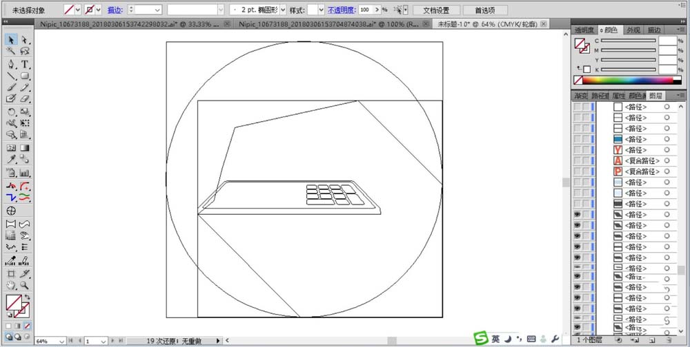 2、接着,我们用钢笔画出显示屏,还有上面的文字的路径。